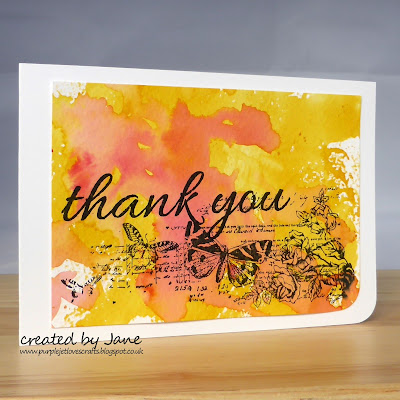 And I'm thinking I've done a fairly similar card to the original. The butterfly, the thanks, the colours and the one curved corner all spoke to me!