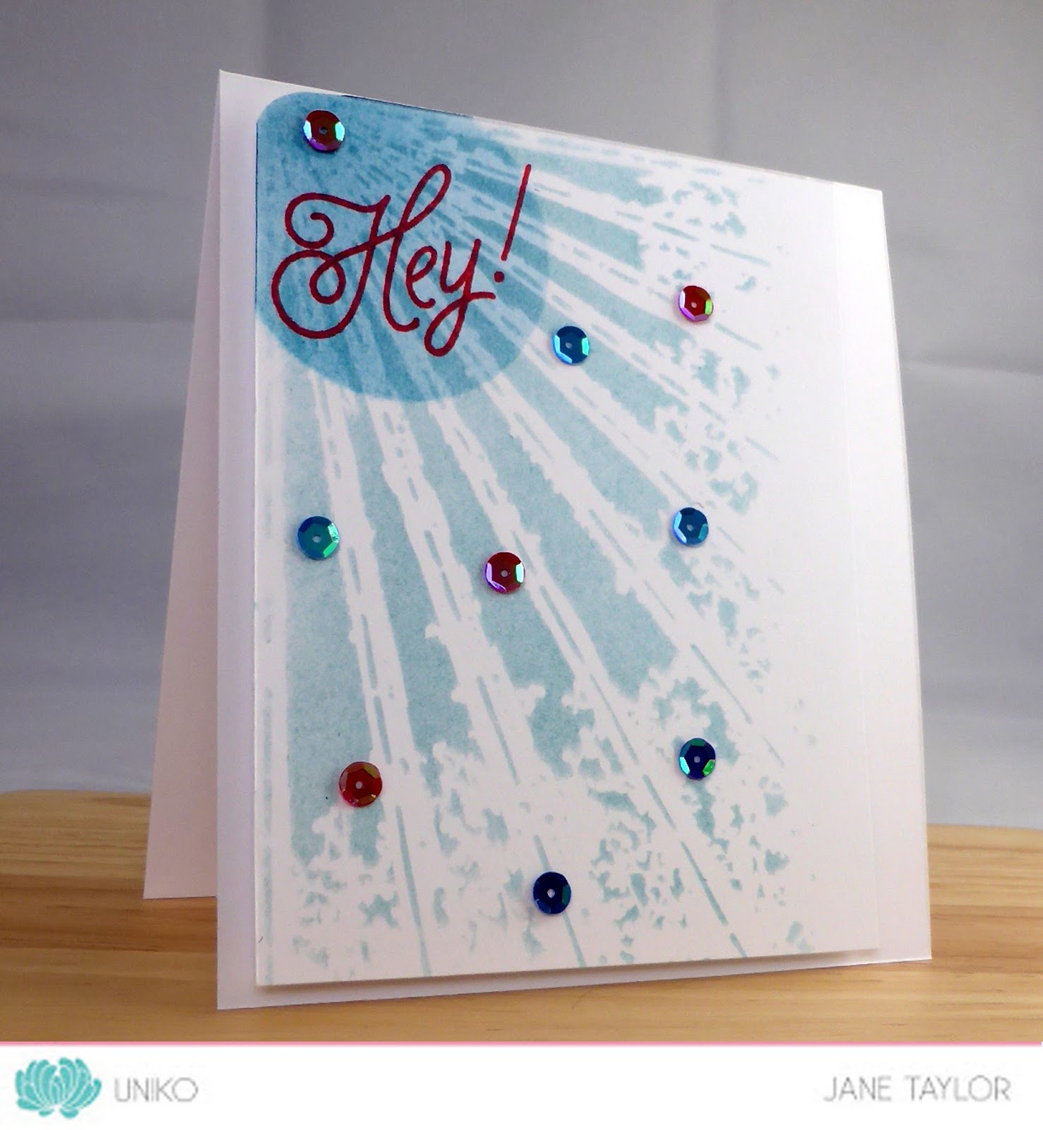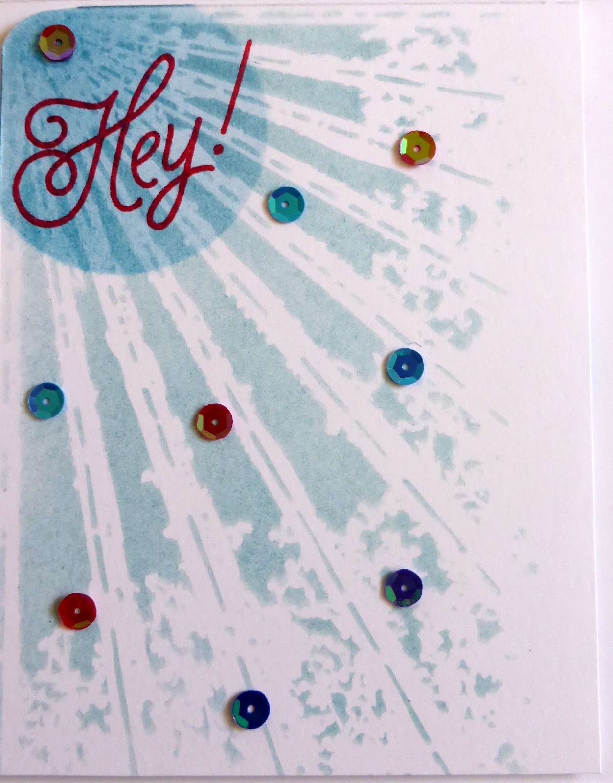 The hey was stamped in pink and then a few sequins were randomly adhered just to finish off.