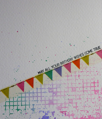I added a few splatters of ink both above and below the washi tape banner flags and then finished off with a long sentiment.