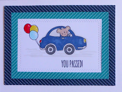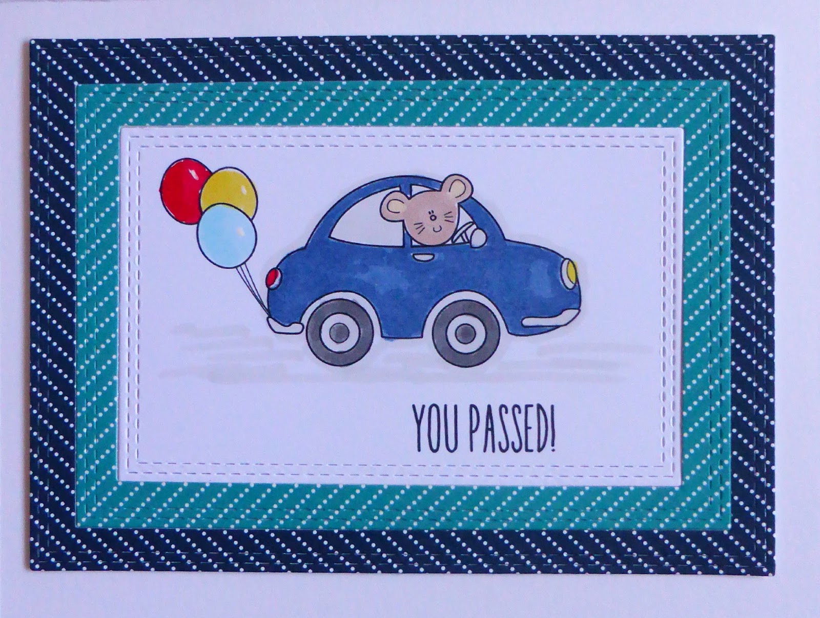 ReplyDeleteGreat card, bright and cheery. It definitely was a happy accident, I thought you had cleverly done that to get the chevron pattern. It's also a great idea for the occasion,meant think we've had a passed your test card before, well done!