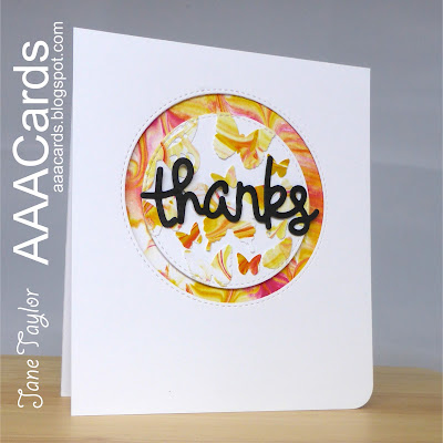 ReplyDeleteI love this challenge too Jane. I love the shaving cream technique - another one I need to try and you've inspired me. I love the colors you've used here. The butterfly punches are perfect. The sentiment stands out beautifully. Fantastic creation!