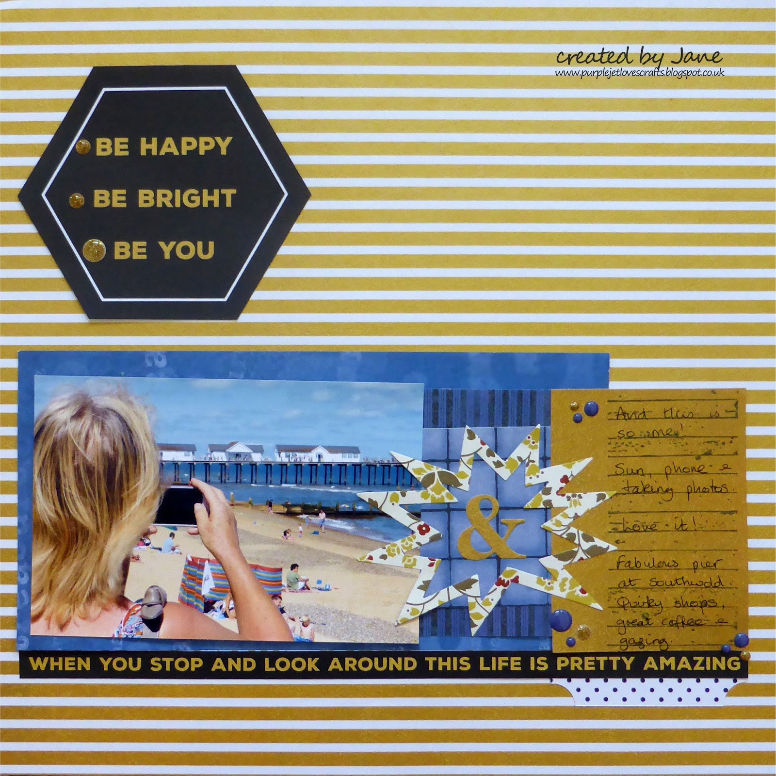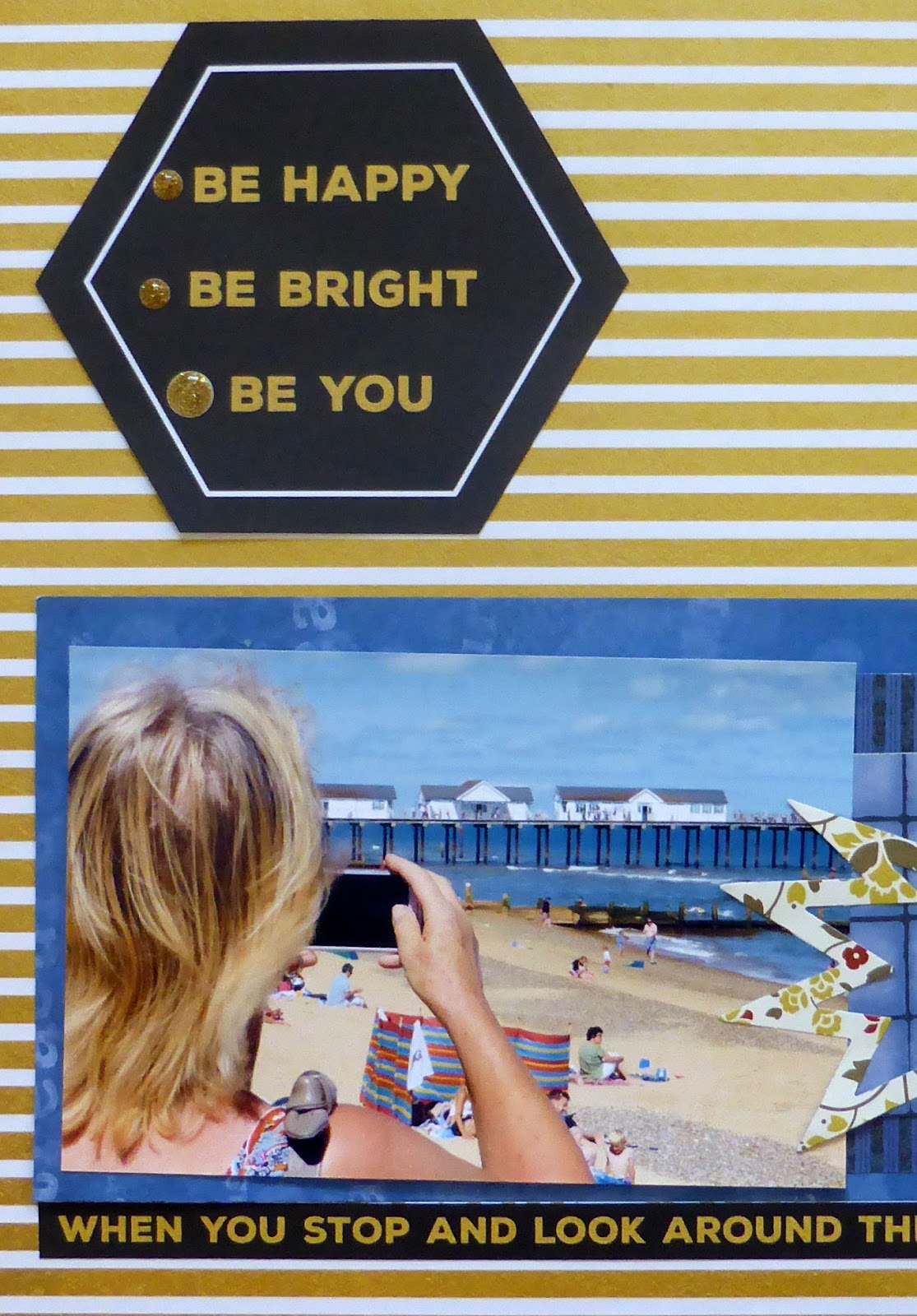 I've just got back from a mini break to Suffolk and we were so lucky with the weather and spent a fabulous day at Southwold soaking up the atmosphere and sun. So it seemed the ideal sketch to use with that sun - although in the end I didn't actually use a sun on my page!