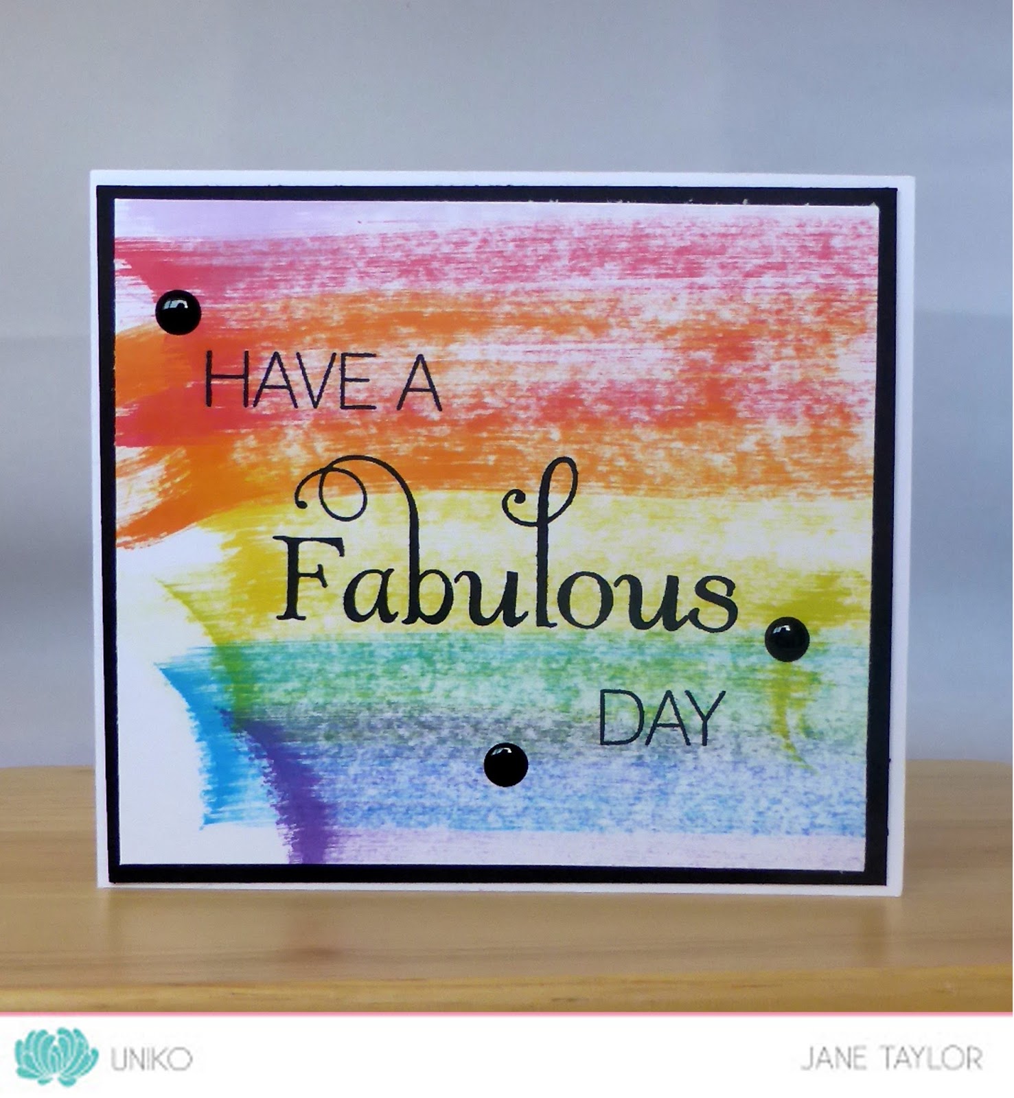 WOW! A rainbow delight Jane. Brilliant use of the colours and such an effective backdrop to the bold sentiment. Just FABULOUS!