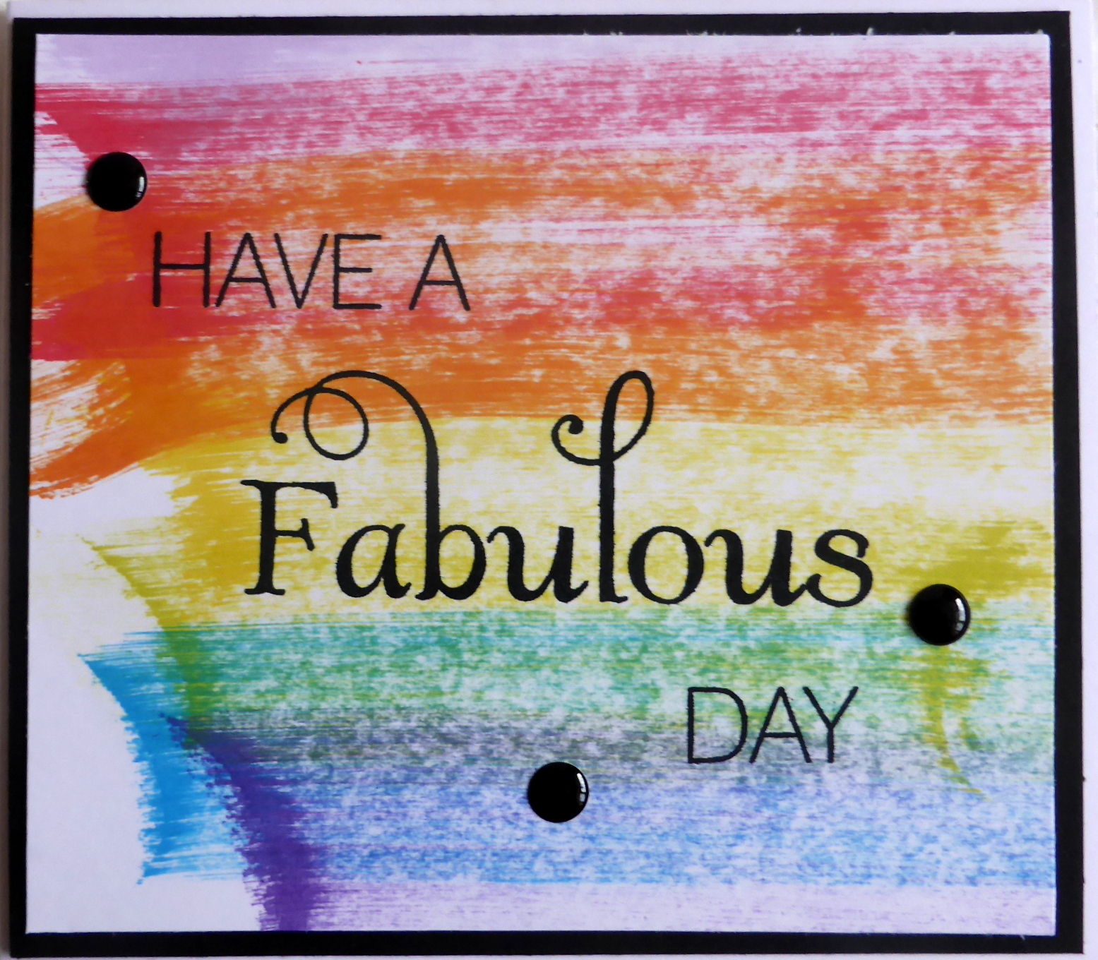 More favourites on this card too - gorgeously huge sentiment stamps and that trio of enamel dots. The whole lot has been matted onto black card to add even more eye catching pizzazz.