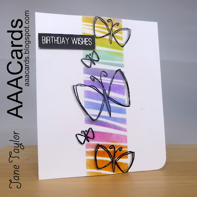 ReplyDeleteWhat a stunning take on this challenge Jane. Love the rainbow stencilled background and your dimensional butterflies look FAB-U-LOUS. A super neat trick with the outline pen that works a treat. Thanks for the shout out and kind words in the AAA post and for being THE BEST teamie with all your wise words and awesome organisation. It's been such a pleasure working alongside you but can't wait to meet IRL and keep in touch. xx