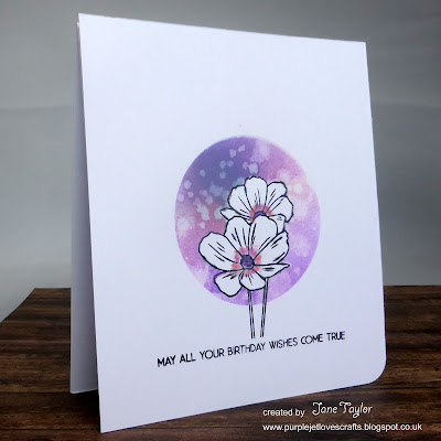 I stamped the greeting and then the cosmos. I masked off the cosmos and used a stencil to blend in those oxide inks. A little colour was added to the flower centres - couldn't resist!