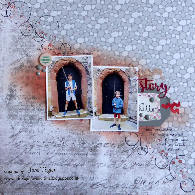 I used bits from my newly acquired ep Once Upon A Time paper collection - really very princess themed, but the colours worked as did some of the elements and added some journalling along the diagonal too.