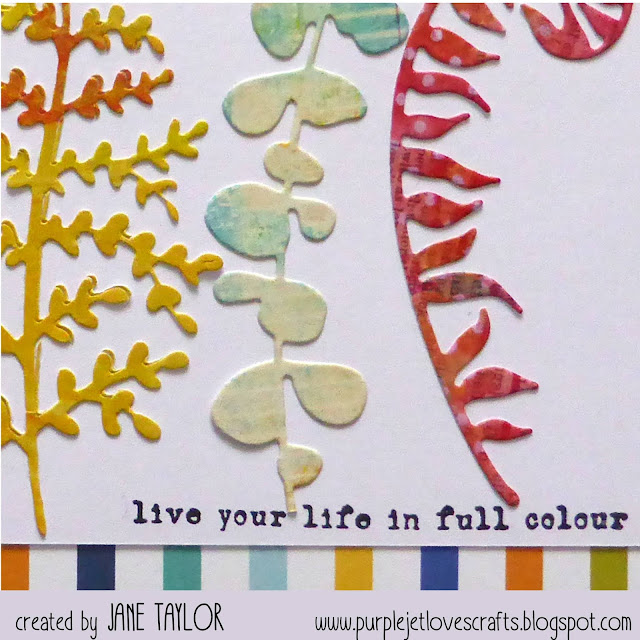 I then added in some of the Funky Fossil Ferns that I die cut from their gorgeous Mixed Media Kaleidoscope paper. They reminded me of the potted plants in the photo.