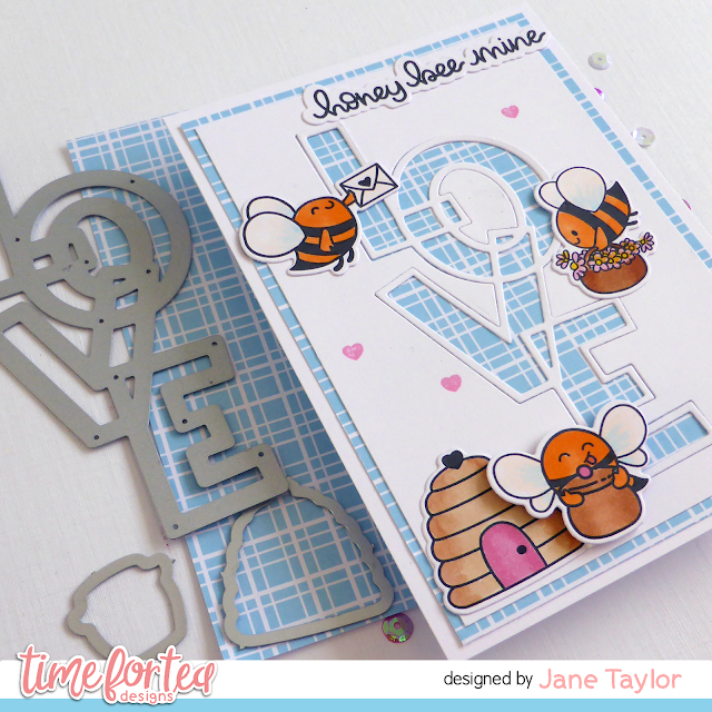 Today I'm sharing a card using the Love Intertwined Sentiment die from the recent release combined with the adorable bees from Bee Happy.