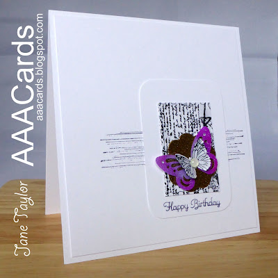 My first card is very CAS and I've let the stamp take centre stage. And I'm loving the striking effect of the ombre ink pad combined with this stamp.