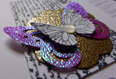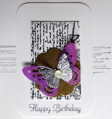 I used a stiched rectangular die to cut my heart panel and trimmed off the left hand side to keep it slimline before adding just a hint of purple under it.