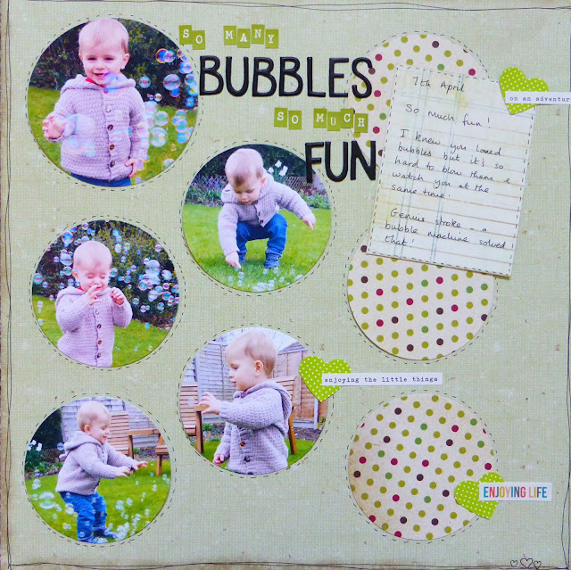 I took a bit of artistic licence and rounded those hexagons as I wanted to use a set of photos of my grandson enjoying bubbles in the garden. And bubbles are round, right?
