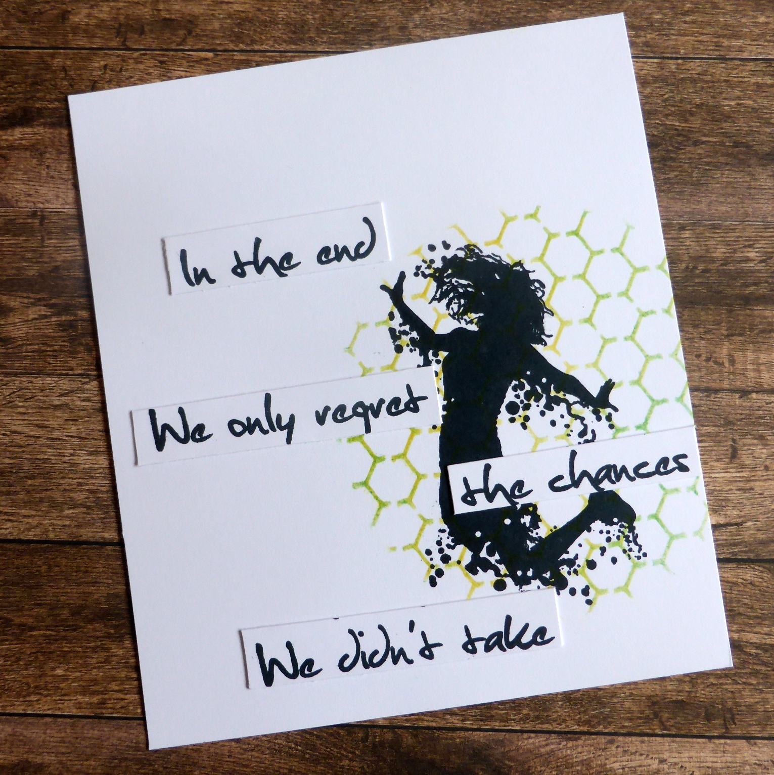 I kept looking at the sketch but couldn't make up my mind whether the frame round the sketch was part of the layout or not and looking at the DT samples there seemed to be a mix of opinions. But I decided to go with a frame and cut down the plain green and matted it on top of the diagonal paper.